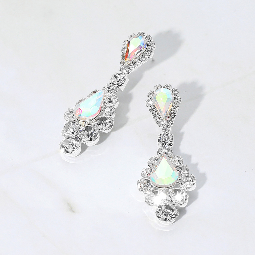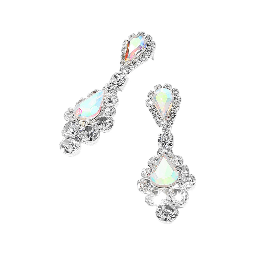 Chunky Pear Crystal Floral Evening Drop Earrings