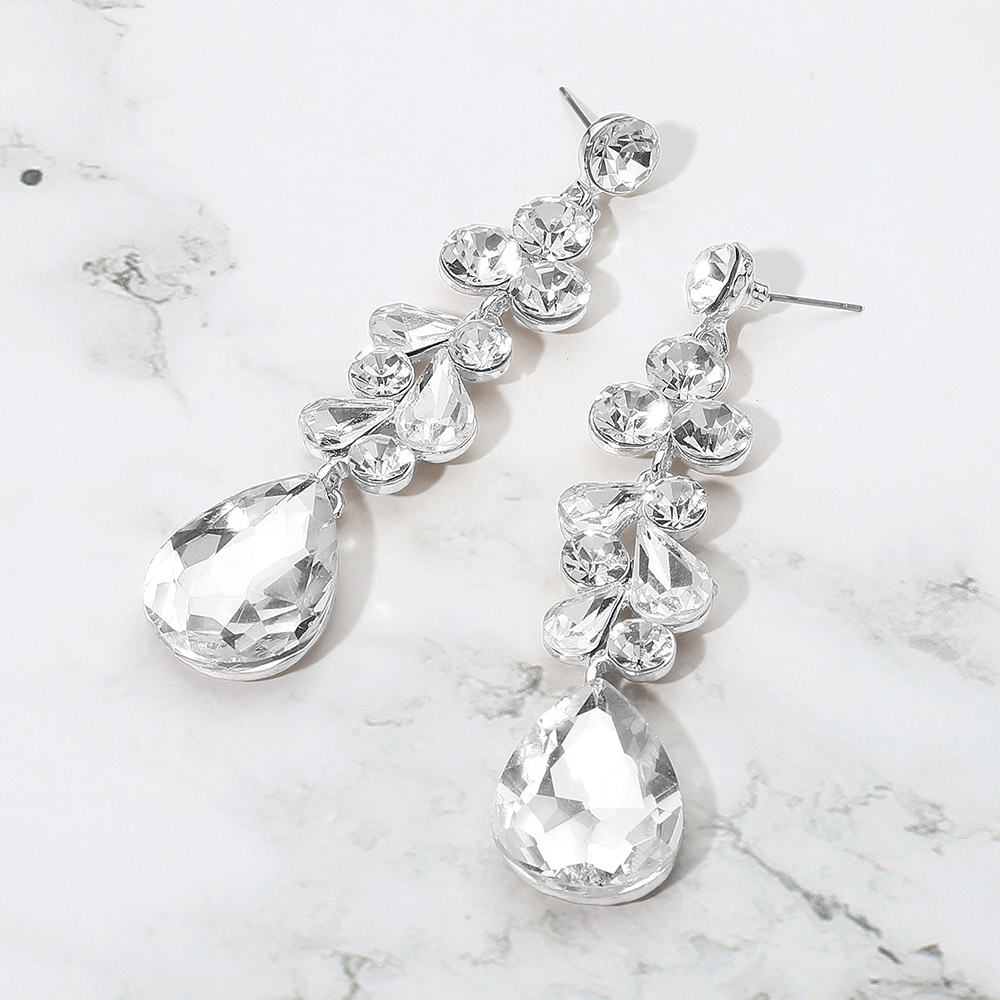 Teardrop Stone Cluster Drop Evening Earrings Teardrop Stone Cluster Drop Evening Earrings