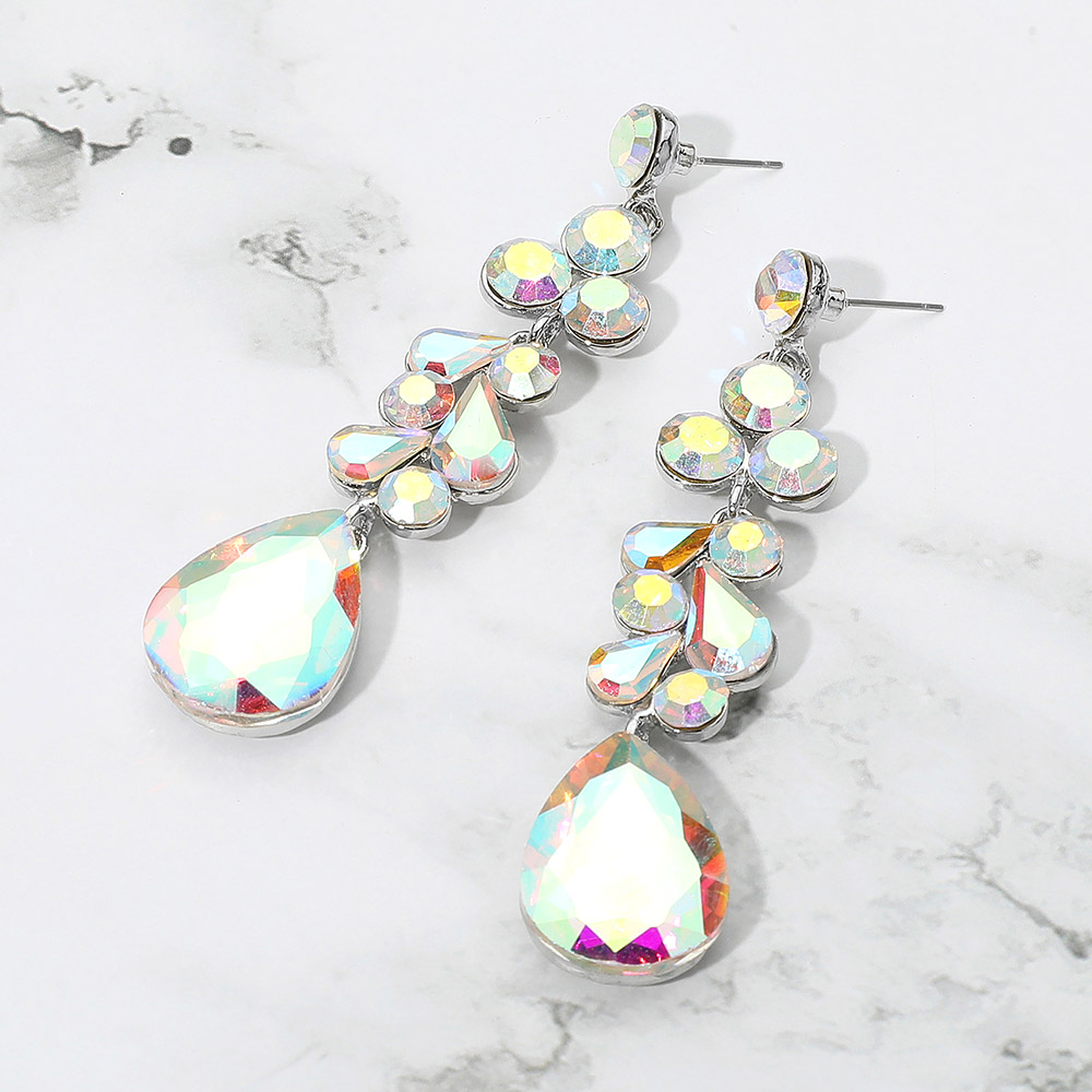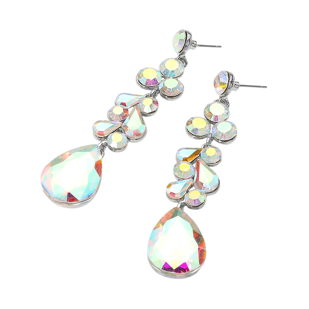 Details • Size : 0.7" X 3.4" • Post Back • Elegant dangle earrings featuring a mix of teardrop and round stones in a cascading design. These statement earrings offer shimmering accents and graceful movement, ideal for enhancing formal or evening looks. • Lead and Nickel Compliant