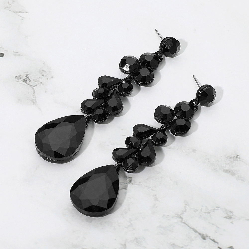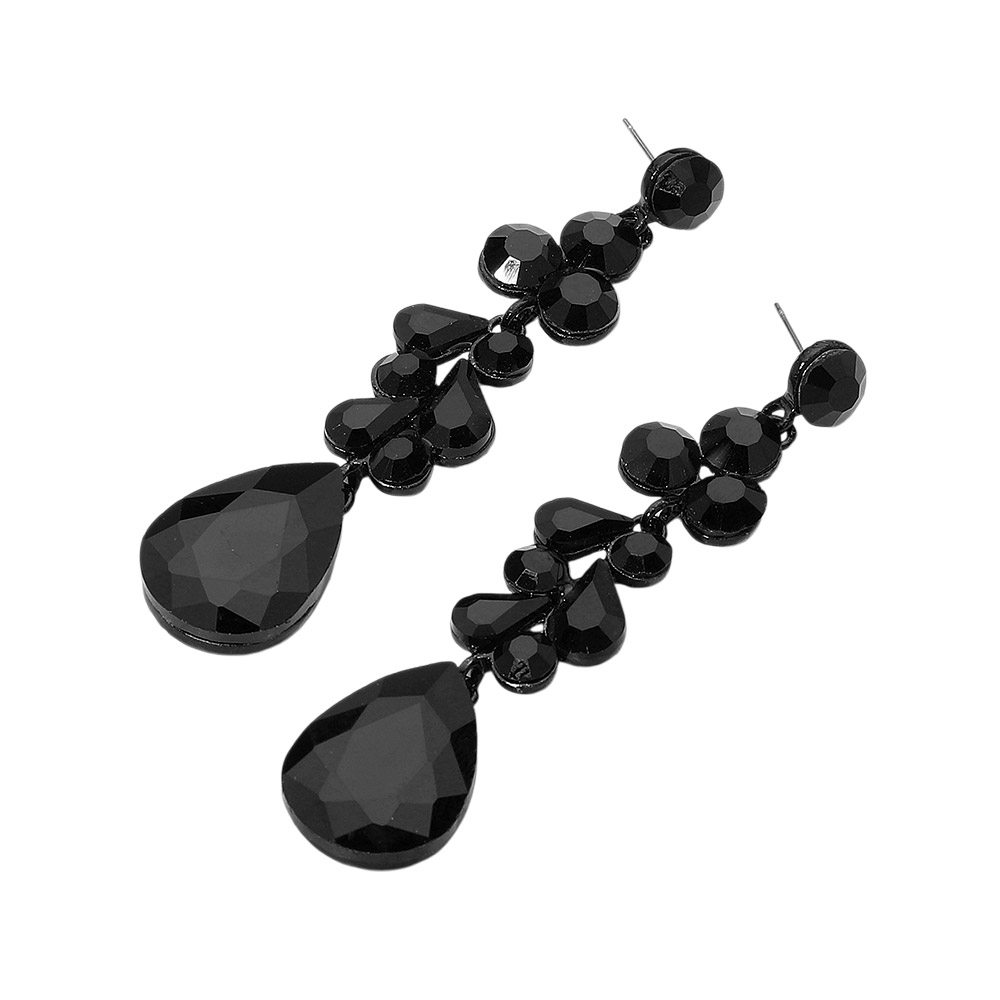 Details • Size : 0.7" X 3.4" • Post Back • Elegant dangle earrings featuring a mix of teardrop and round stones in a cascading design. These statement earrings offer shimmering accents and graceful movement, ideal for enhancing formal or evening looks. • Lead and Nickel Compliant
