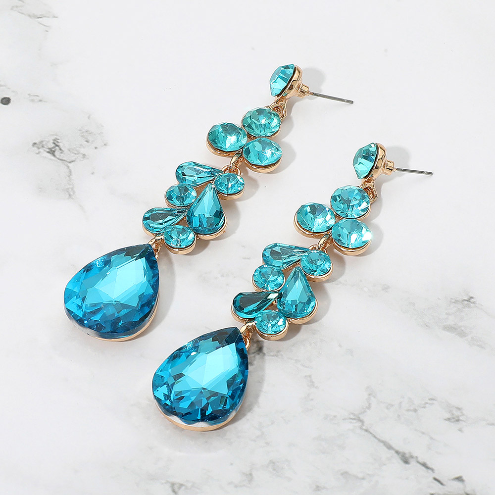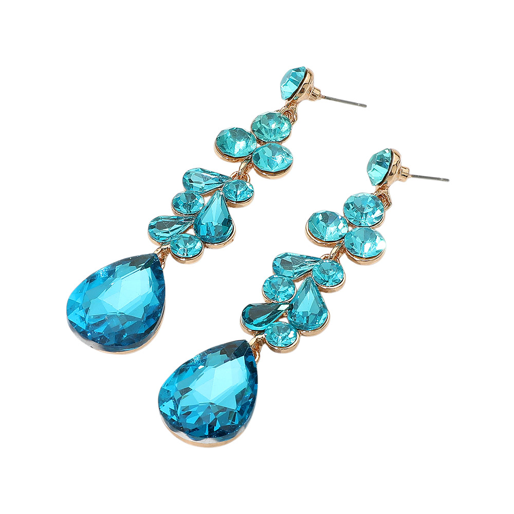 Teardrop Stone Cluster Drop Evening Earrings Teardrop Stone Cluster Drop Evening Earrings