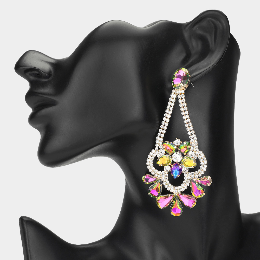 Teardrop Stone Cluster Embellished Chandelier Evening Earrings