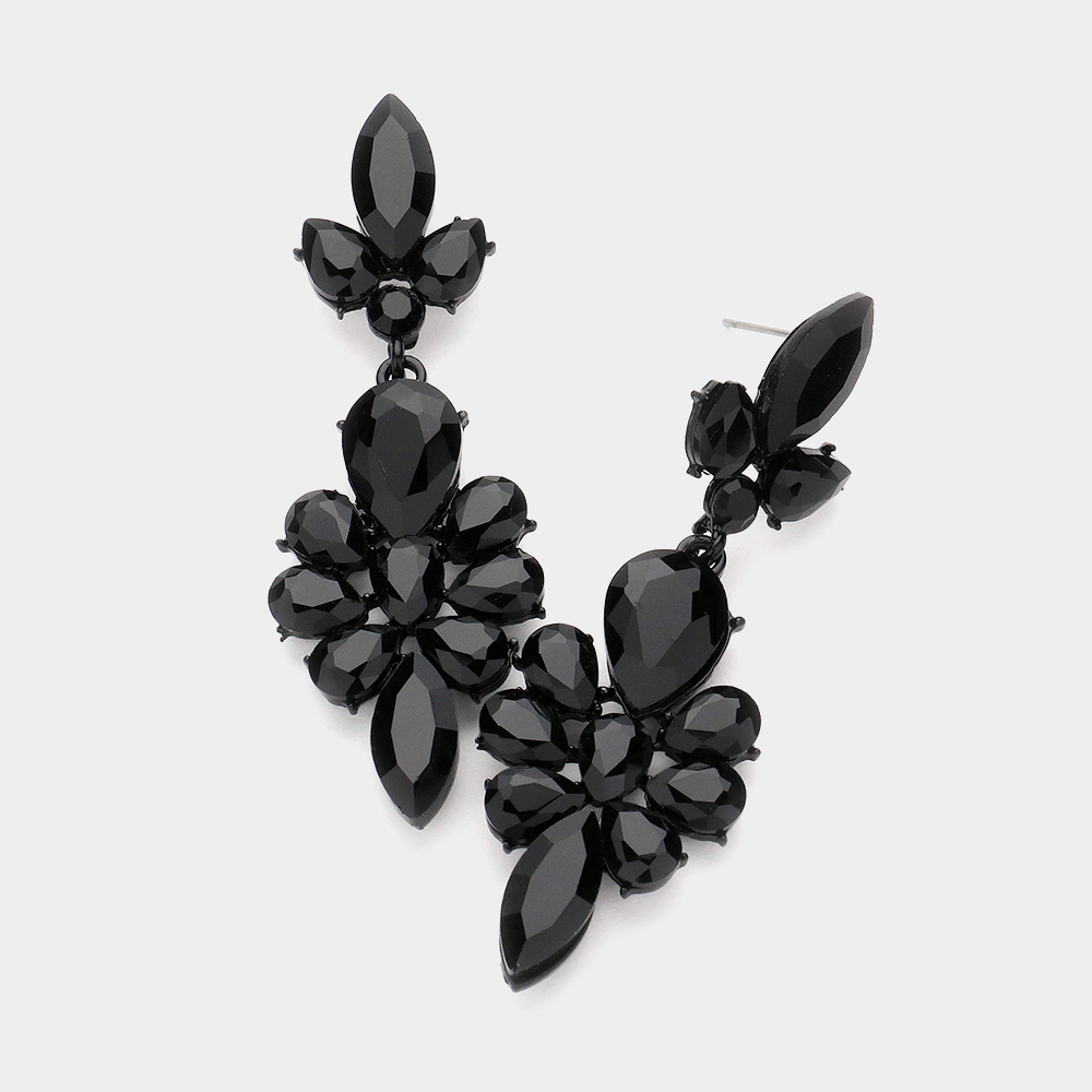 Teardrop Stone Cluster Embellished Dangle Evening Earrings