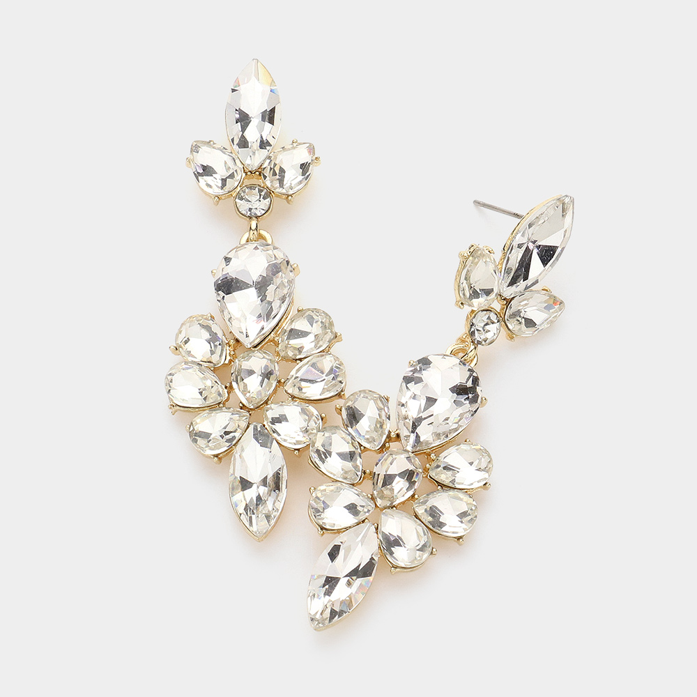 Teardrop Stone Cluster Embellished Dangle Evening Earrings