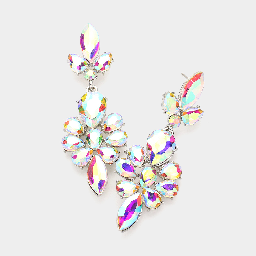 Teardrop Stone Cluster Embellished Dangle Evening Earrings