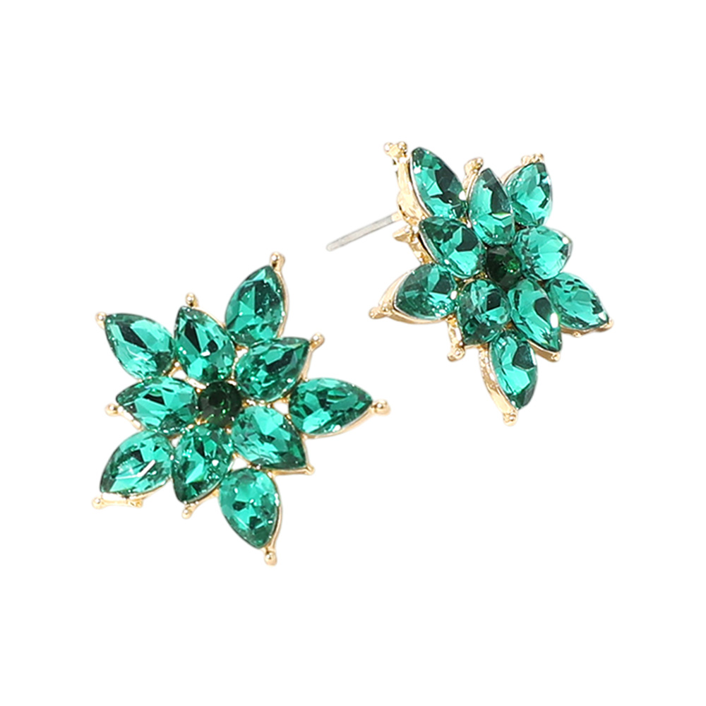 Teardrop Stone Cluster Flower Stud Evening Earrings