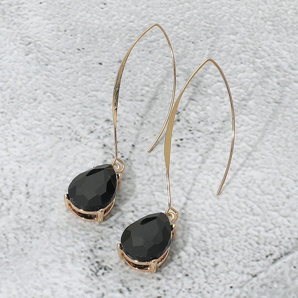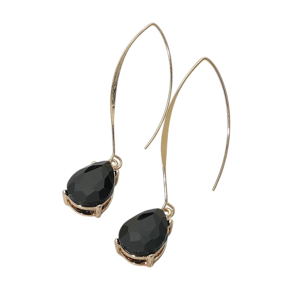 • Add refined style to your look with these teardrop dangle earrings featuring a sleek hook design and faceted gemstone accent. Perfect for both casual wear and special occasions.