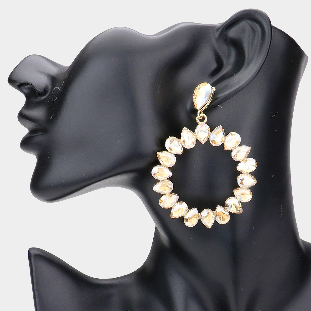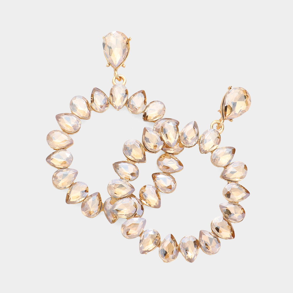 Teardrop Stone Cluster Open Circle Dangle Evening Earrings
