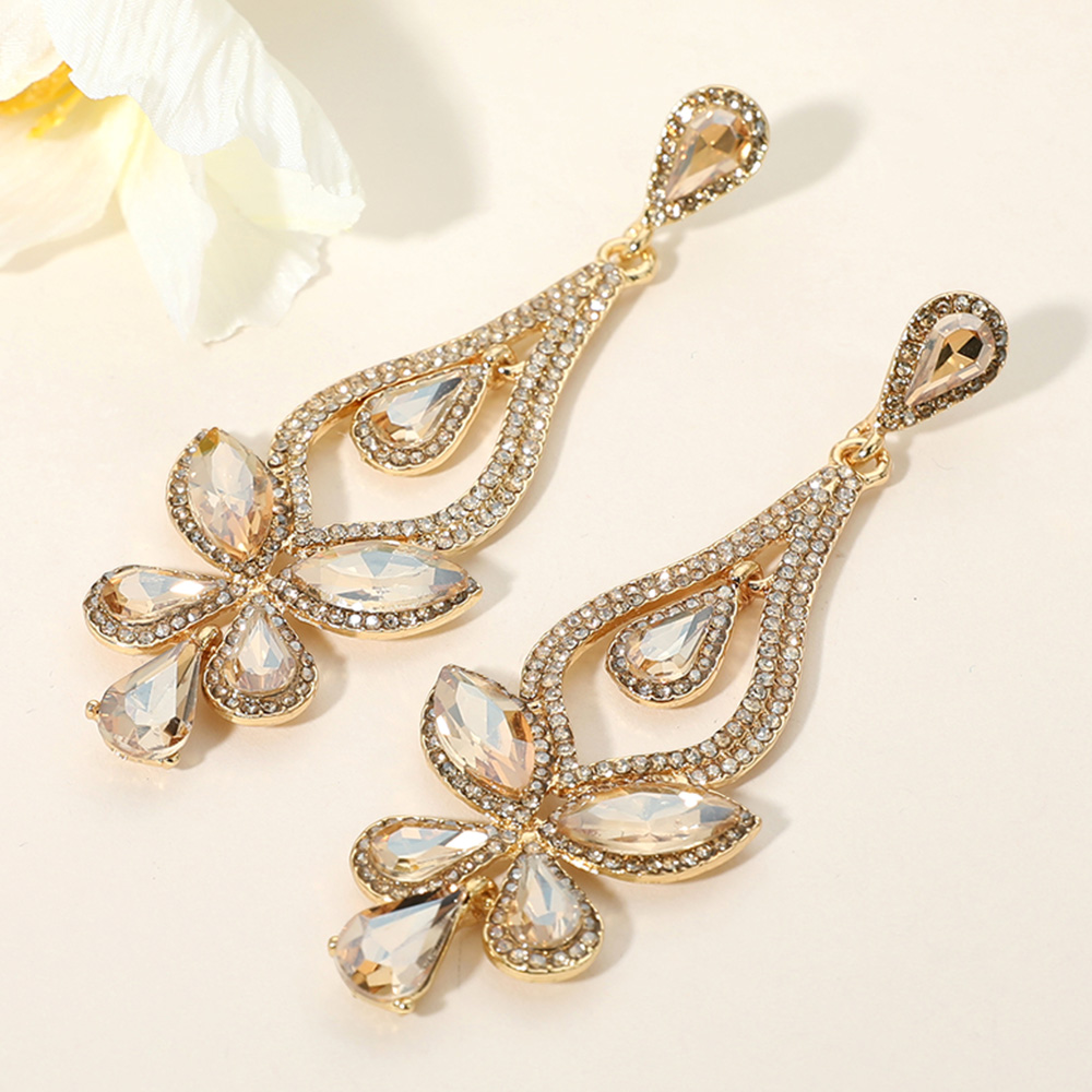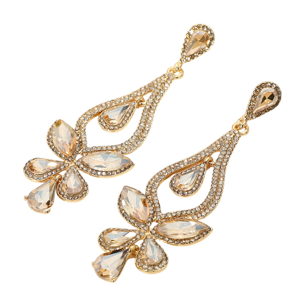 Teardrop Stone Cluster Chandelier Drop Evening Earrings