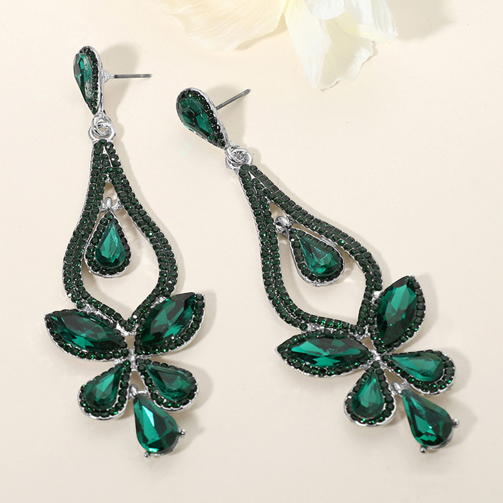 Teardrop Stone Cluster Pointed Chandelier Dangle Evening Earrings