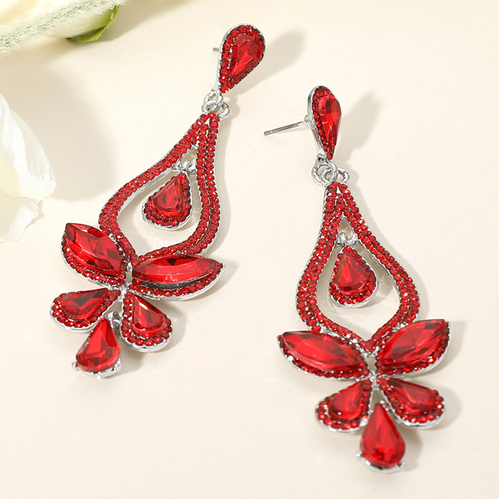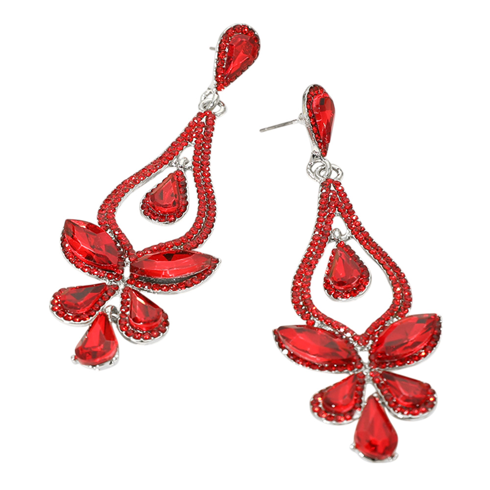 Teardrop Stone Cluster Pointed Chandelier Dangle Evening Earrings