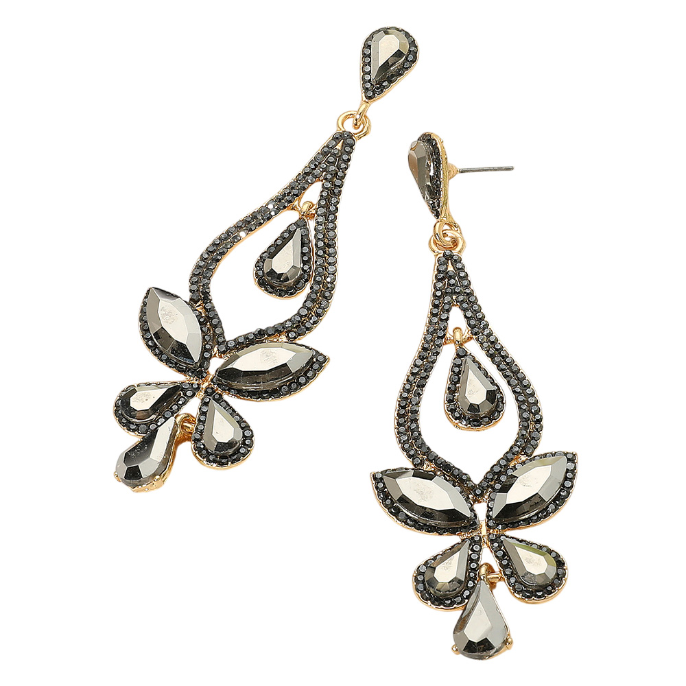 Teardrop Stone Cluster Pointed Chandelier Dangle Evening Earrings