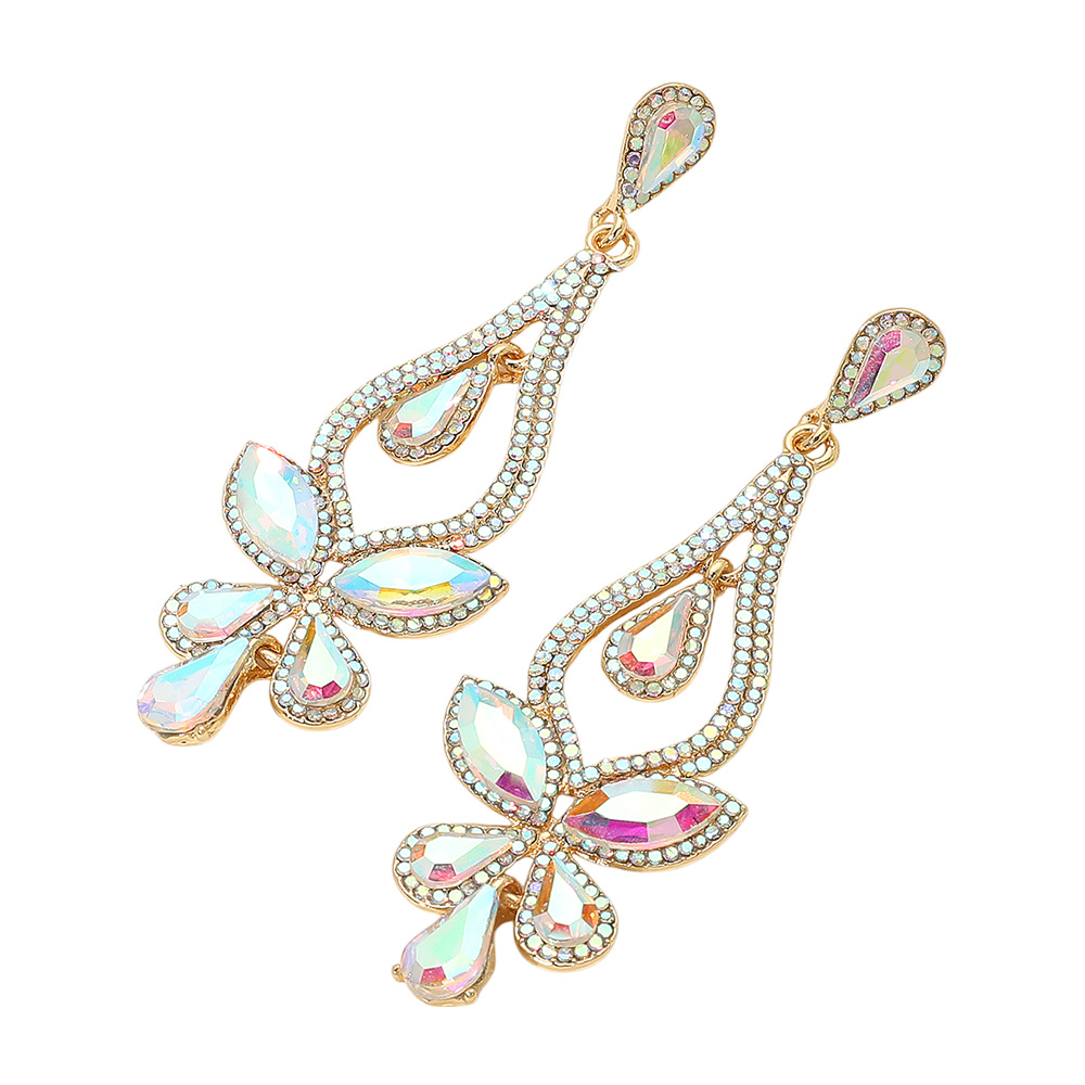 Teardrop Stone Cluster Pointed Chandelier Dangle Evening Earrings