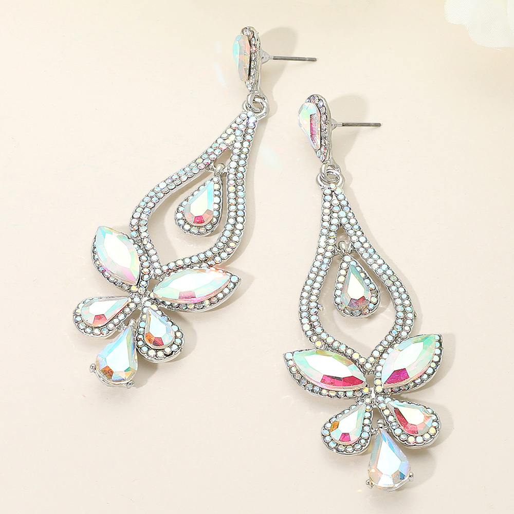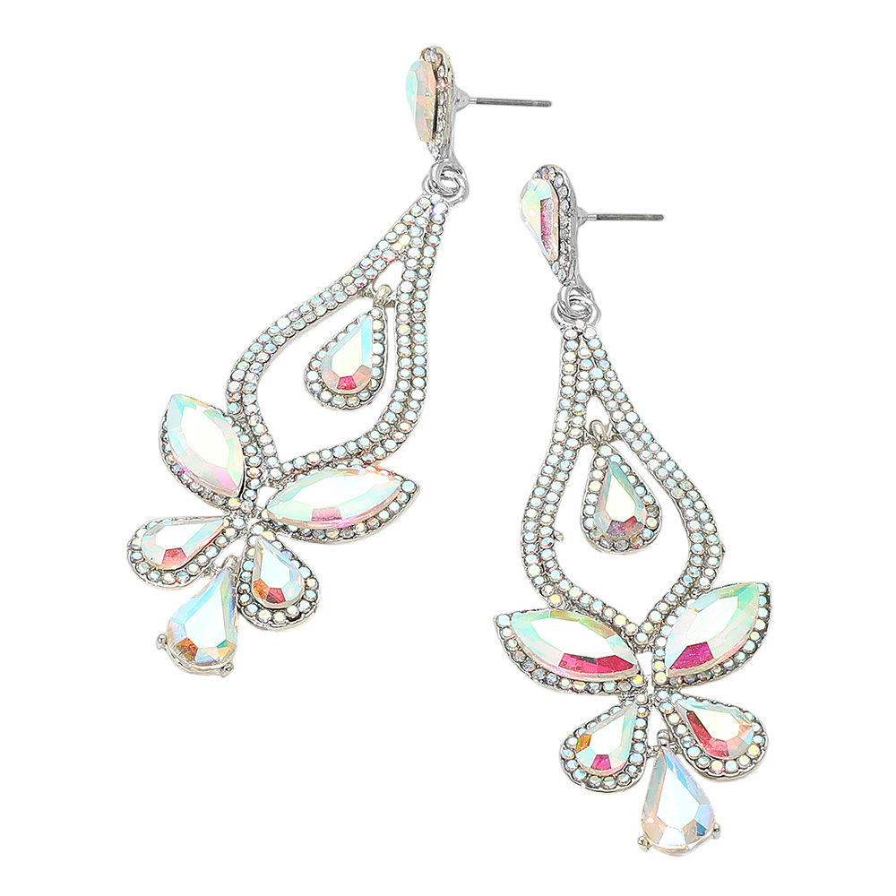 Teardrop Stone Cluster Pointed Chandelier Dangle Evening Earrings
