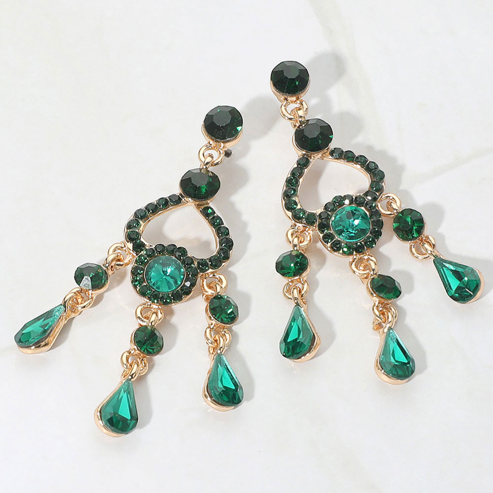 Teardrop Stone Cluster Rip Chandelier Dangle Evening Earrings
