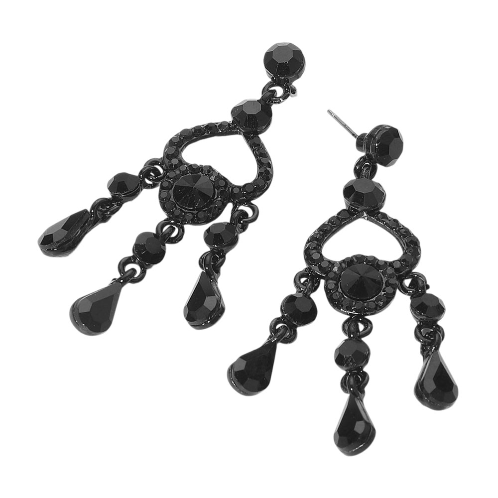 • Add glam to your look with these rhinestone chandelier earrings featuring a heart-shaped frame and teardrop dangles. Designed for sparkle and movement, they’re perfect for weddings, parties, or evening wear. Lightweight with a secure fit for all-night comfort.