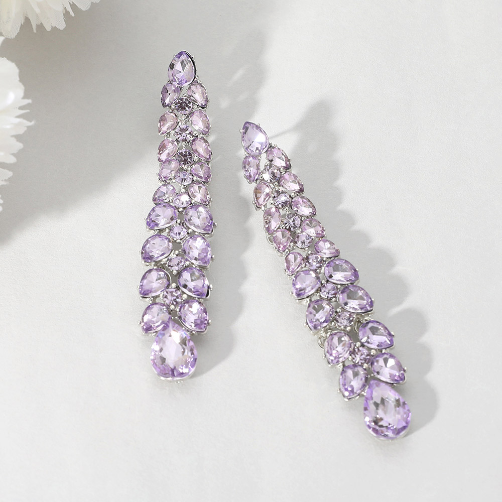 Teardrop Stone Cluster Vine Dropdown Evening Earrings