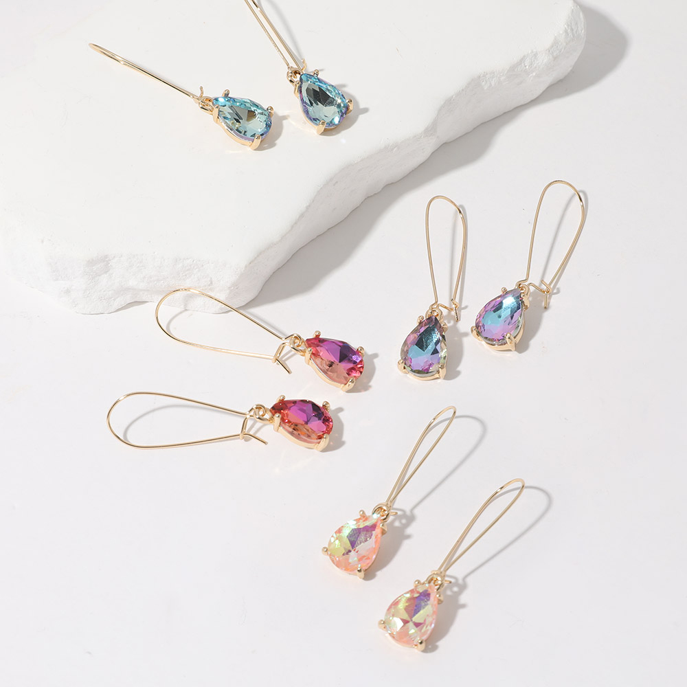Details • Size : 0.4" X 1.8" • Kidney Earwire Back • Elegant teardrop hook earrings featuring faceted crystal accents for a subtle, sophisticated shine. Lightweight and stylish, perfect for dressing up any outfit with a hint of sparkle and grace. • Lead and Nickel Compliant