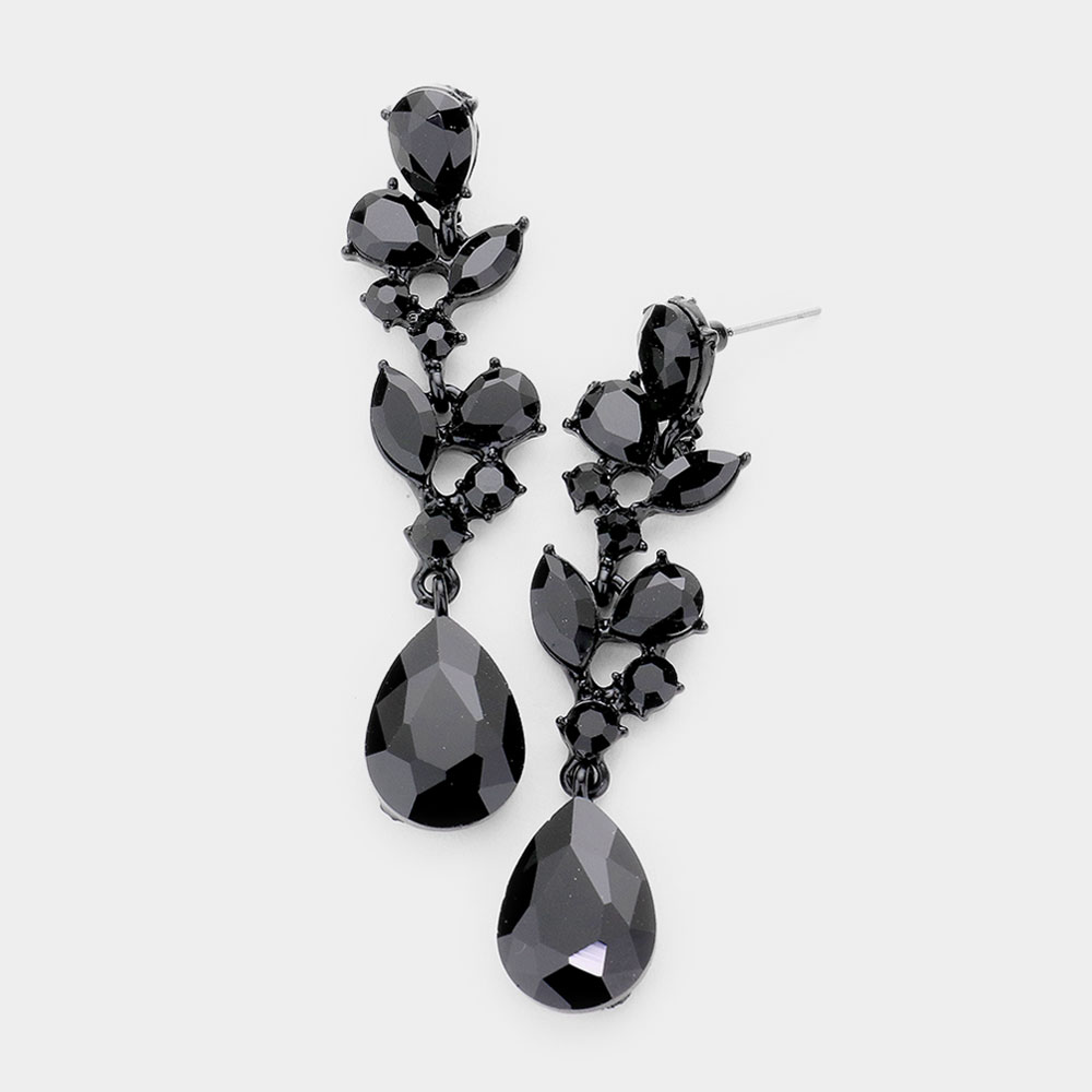Marquise Stone Cluster Embellished Teardrop Dangle Dropdown Evening Earrings