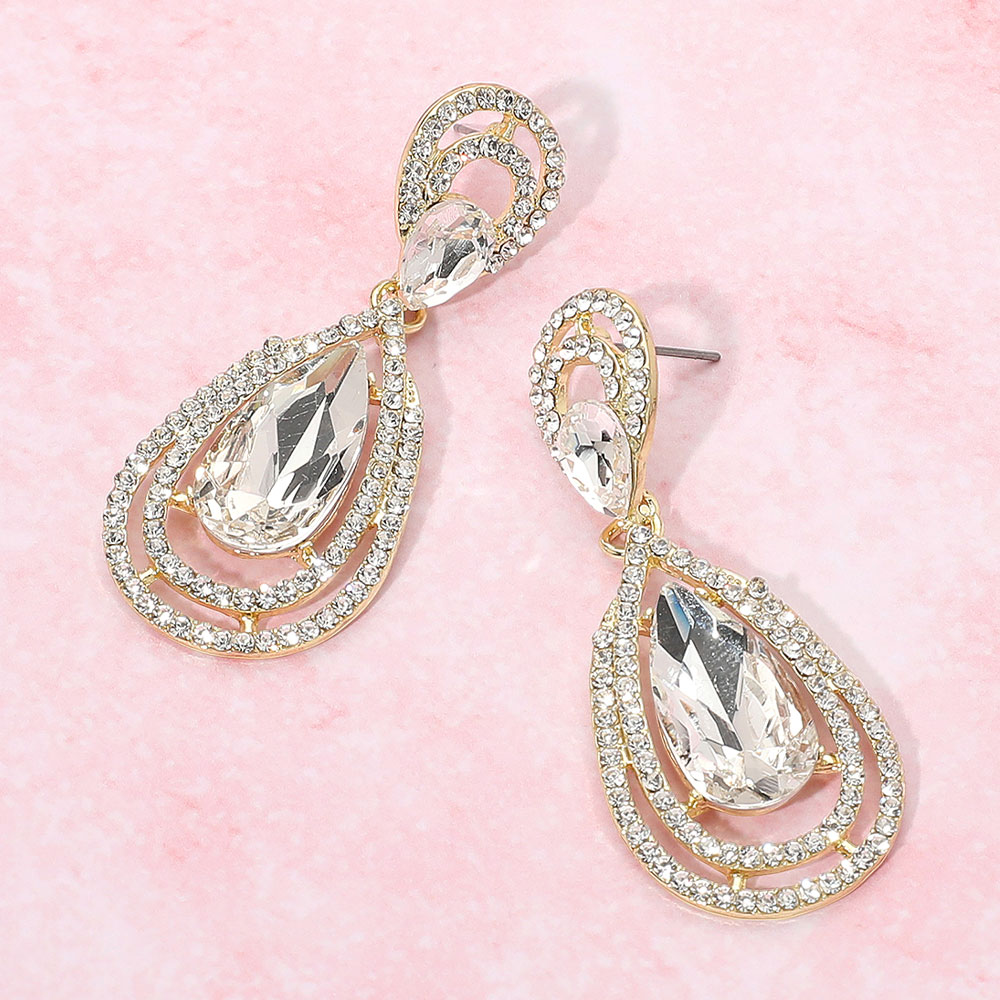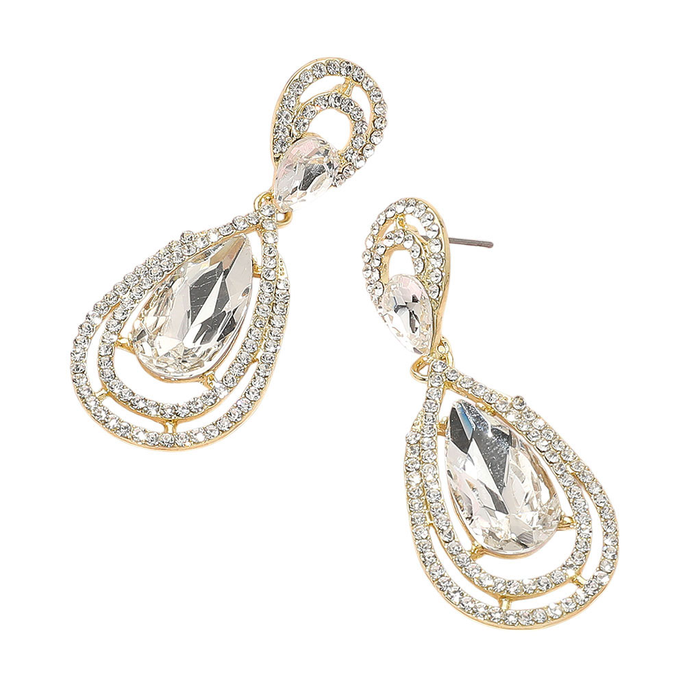 • Dazzling drop earrings with an elegant teardrop shape and sparkling crystal accents, perfect for formal events, weddings, and evening wear.