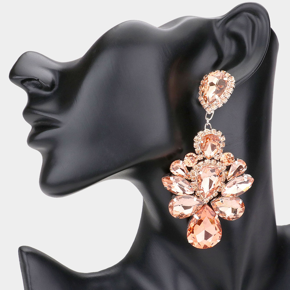 Teardrop Stone Embellished Dangle Evening Earrings