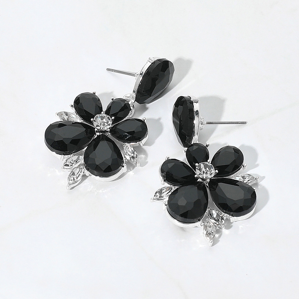 Stone Pointed Enamel Flower Open Ring Dangle Earrings