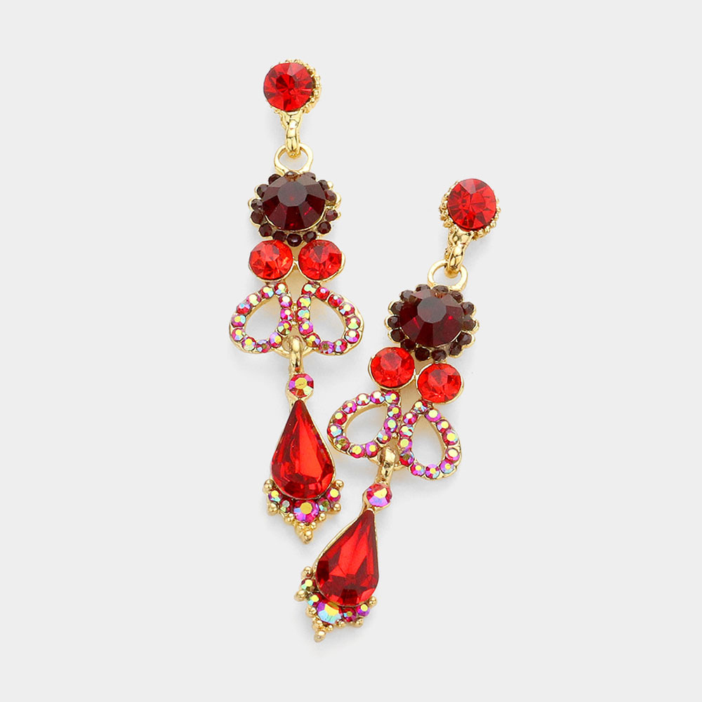 Rectangular Glass Stone Cluster Dangle Evening Earrings