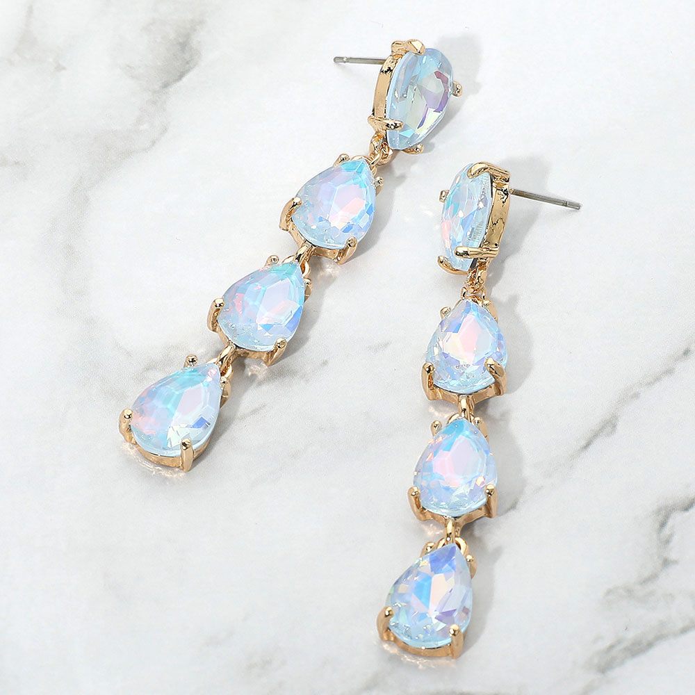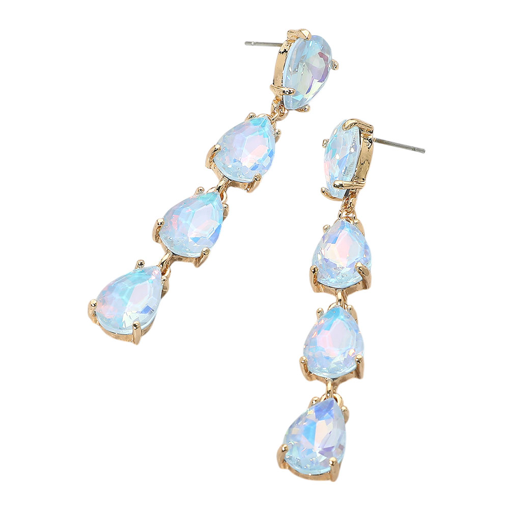 • Elegant dangle earrings featuring five shimmering teardrop-shaped pastel stones in an opal-like finish. Lightweight and stylish, perfect for a soft, dreamy look.
