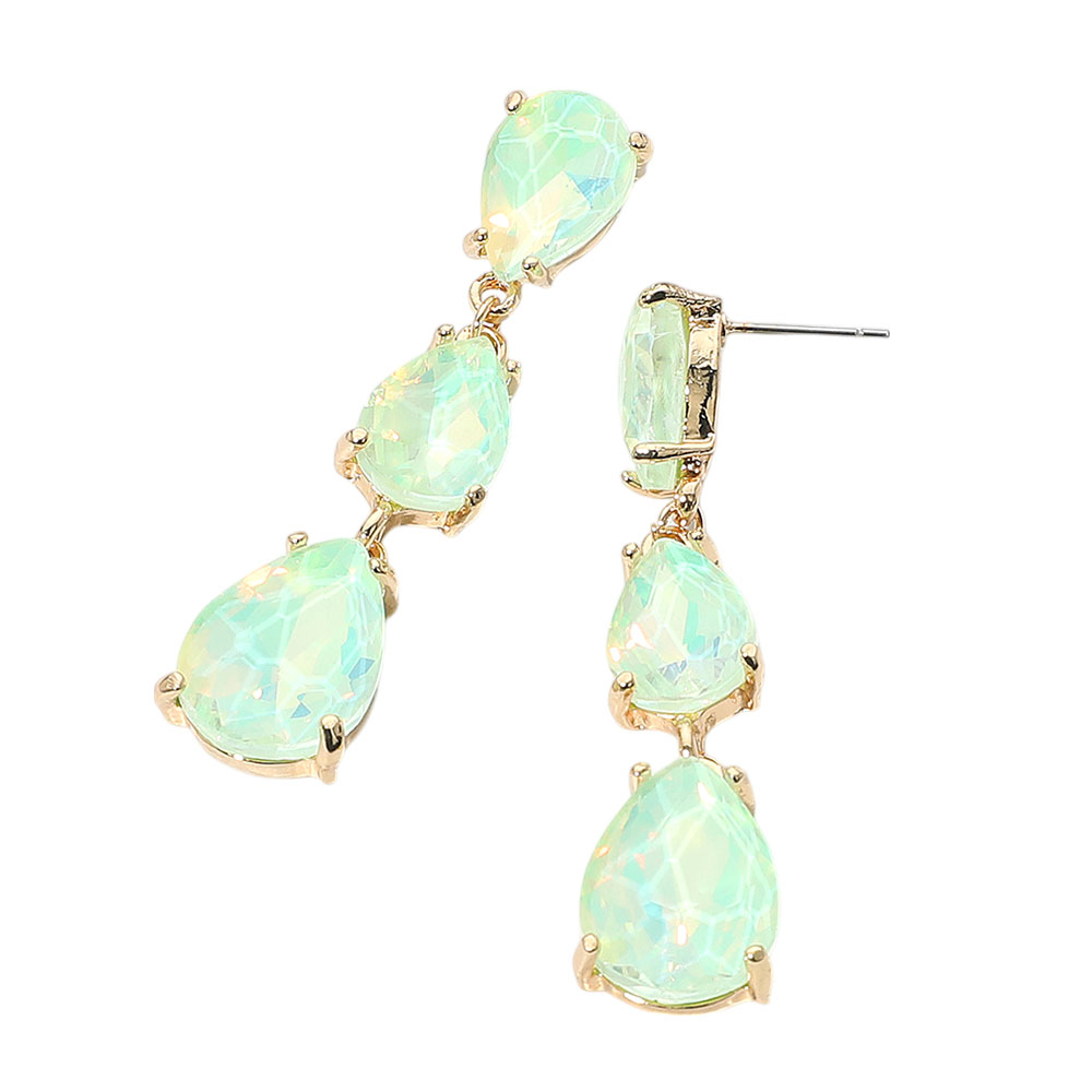 • Shimmer in style with these triple teardrop dangle earrings, featuring faceted stones that catch the light beautifully. Designed to add a touch of glamour to both daytime looks and evening ensembles.