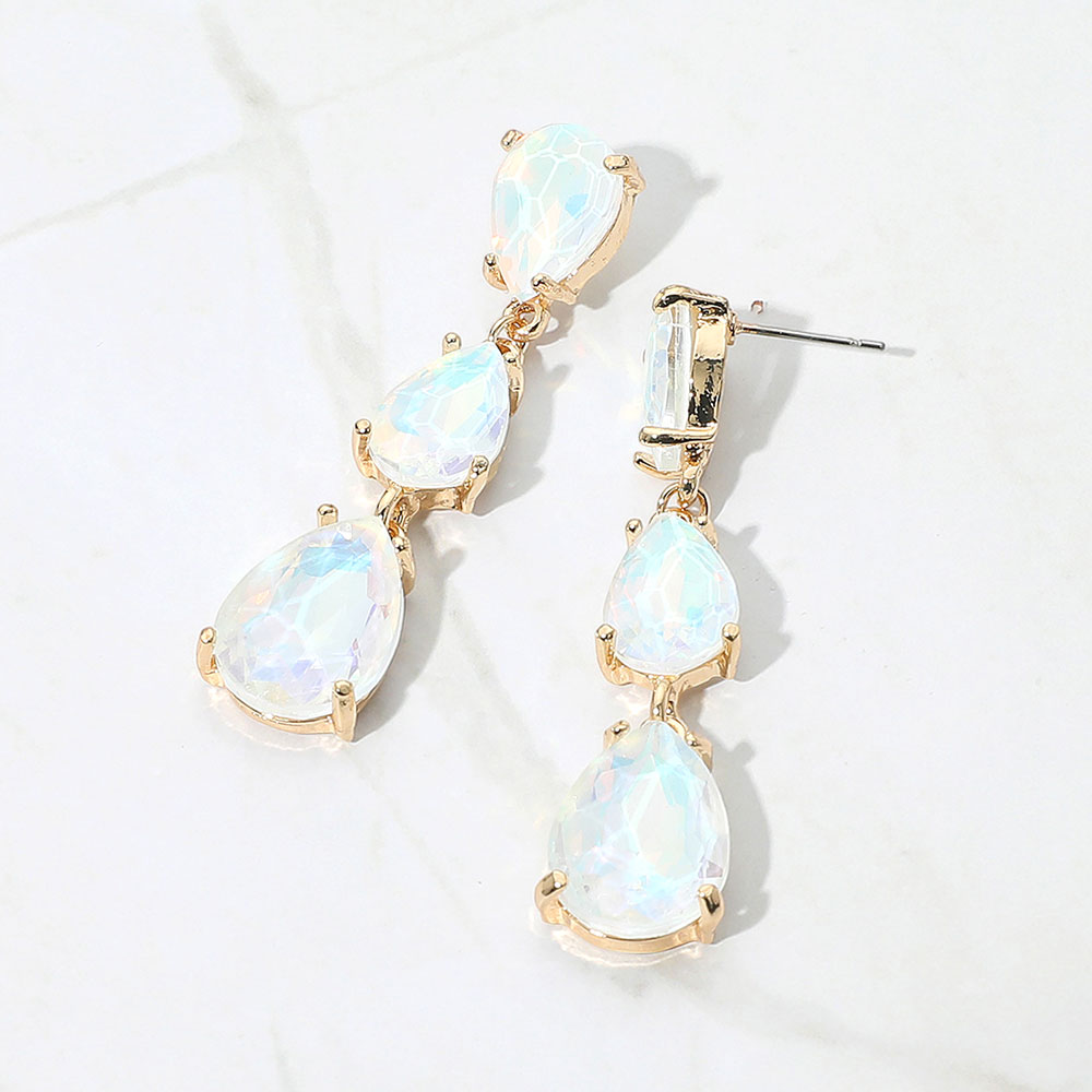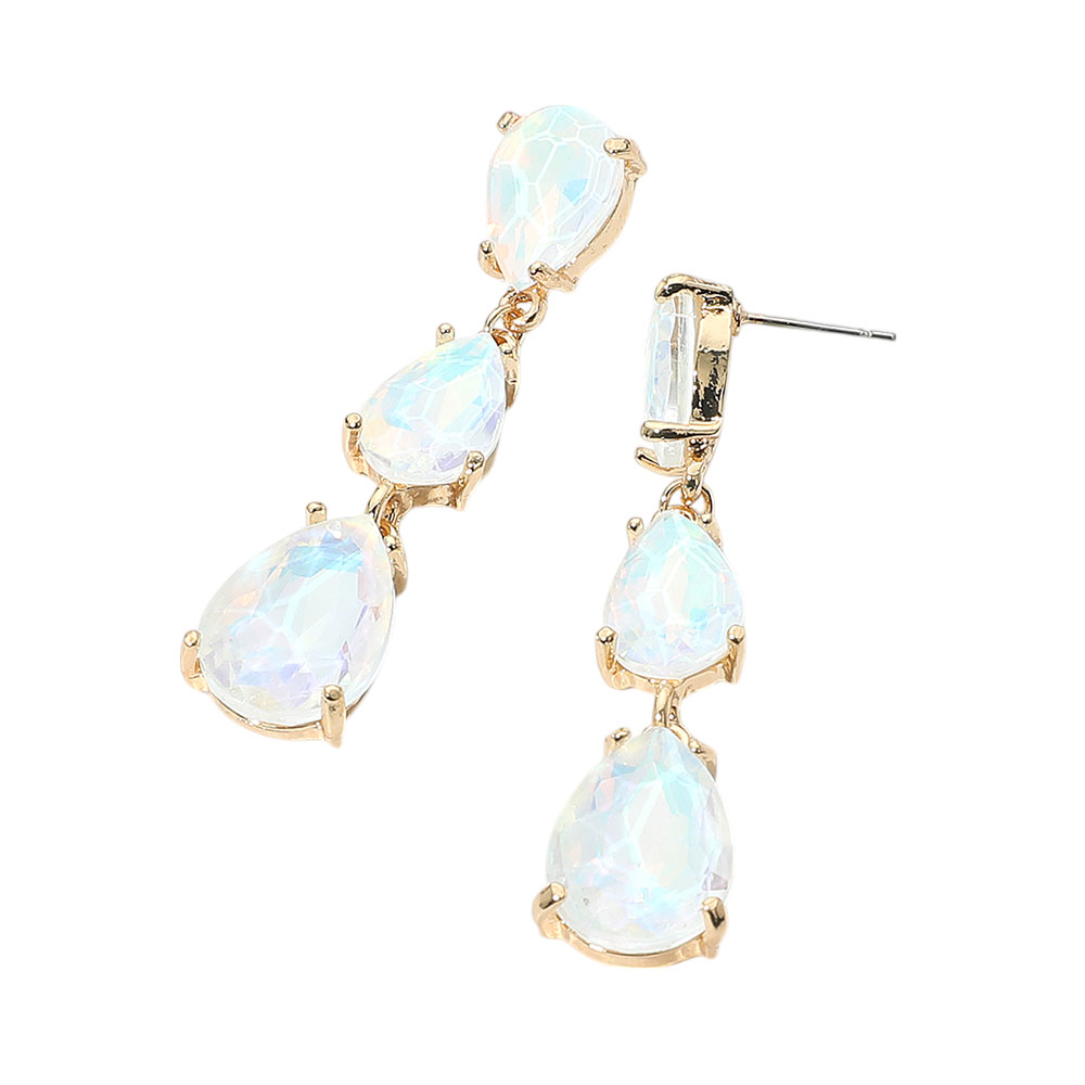 • Shimmer in style with these triple teardrop dangle earrings, featuring faceted stones that catch the light beautifully. Designed to add a touch of glamour to both daytime looks and evening ensembles.