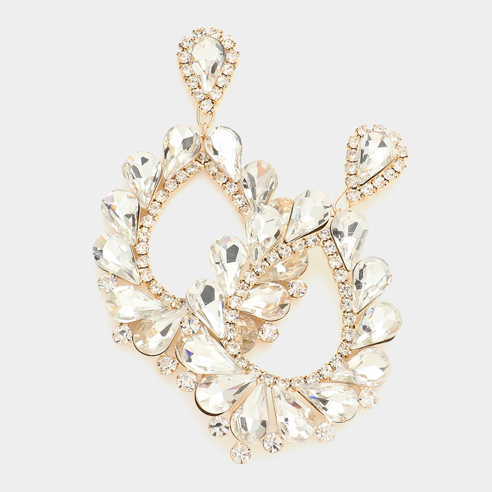 Teardrop Stone Trimmed Dangle Evening Earrings