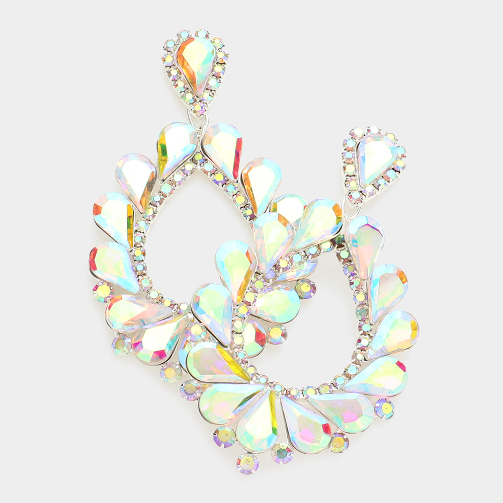 Teardrop Stone Trimmed Dangle Evening Earrings