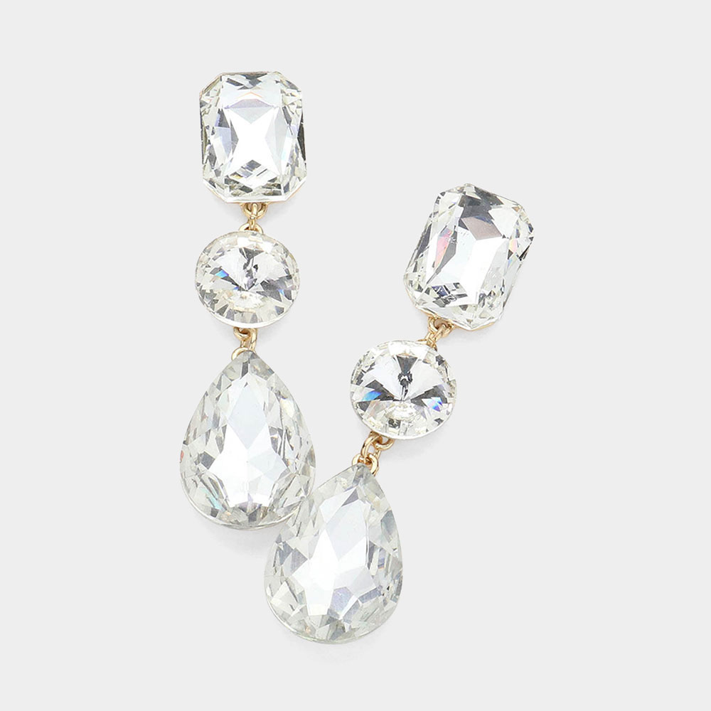 Marbled Metal Teardrop Stone Embellished Plated Statement Necklace