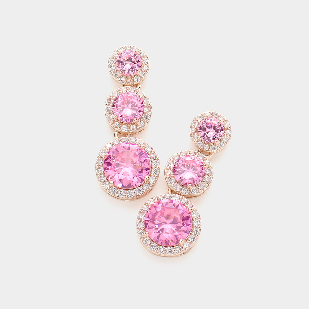 Triple CZ Round Stone Link Dangle Evening Earrings