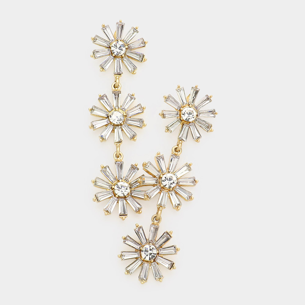 12Pairs - Square Stone Pointed Chunky Metal Earrings