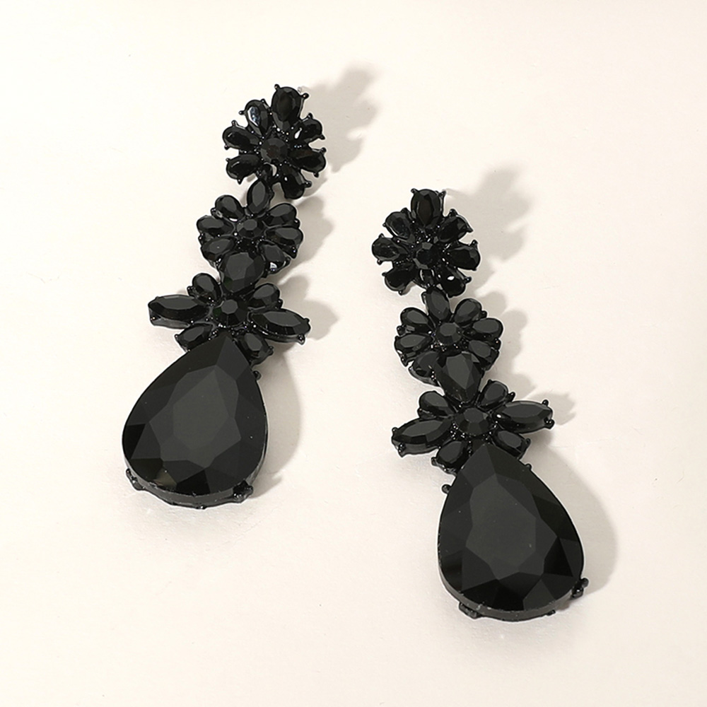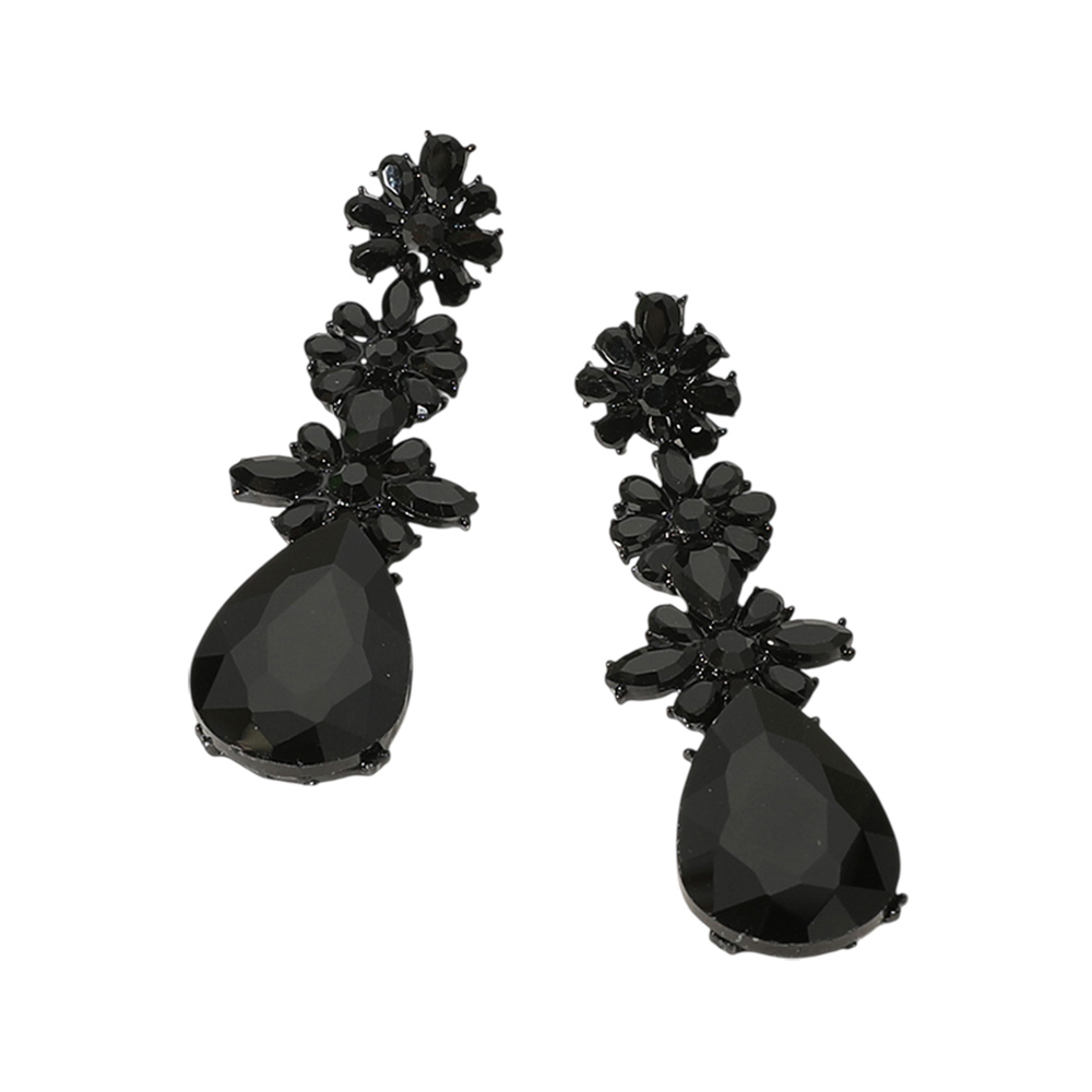 Triple Flower Stone Cluster Link Teardrop Pointed Evening Earrings