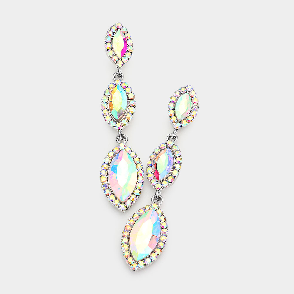 Triple Marquise Stone Drop Down Dangle Evening Earrings