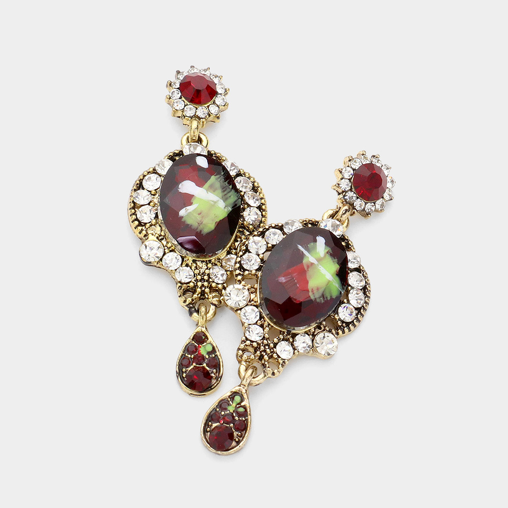 Oval Teardrop Stone Cluster Link Dropdown Evening Earrings