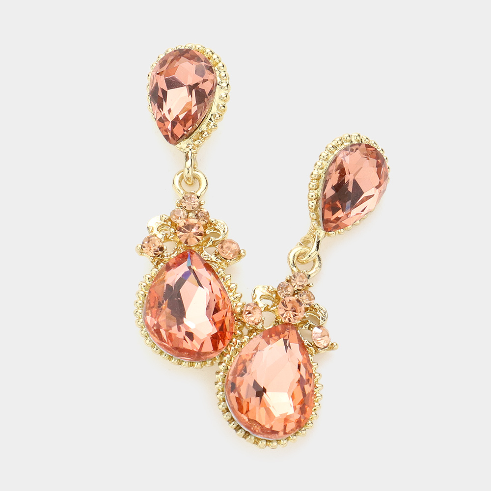 Victorian Teardrop Crystal Rhinestone Evening Earrings