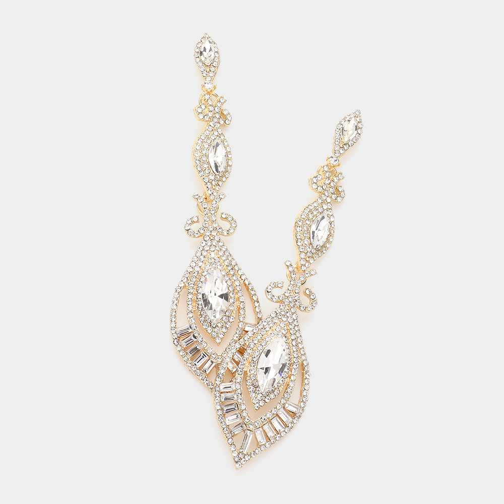 Victorian Triple Marquise Glass Crystal Evening Earrings