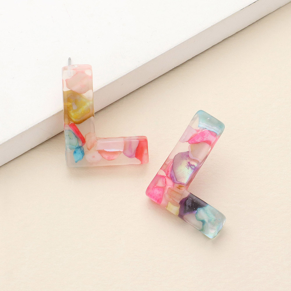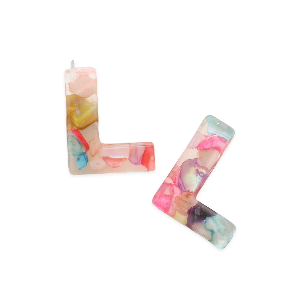 -L- Gold Dipped Enamel Rectangle Initial Monogram Pendant Necklace