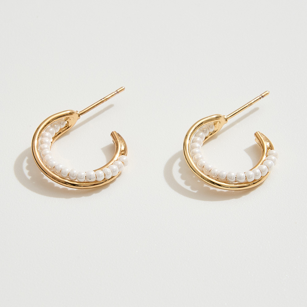 14K Gold Dipped Pearl Beads Small Hoop Earrings 14K Gold Dipped Pearl Beads Small Hoop Earrings 14K Gold Dipped Pearl Beads Small Hoop Earrings