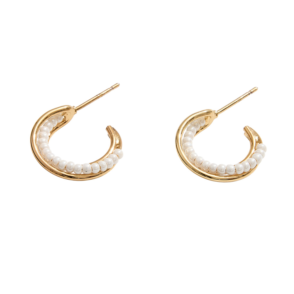 14K Gold Dipped Pearl Beads Small Hoop Earrings
