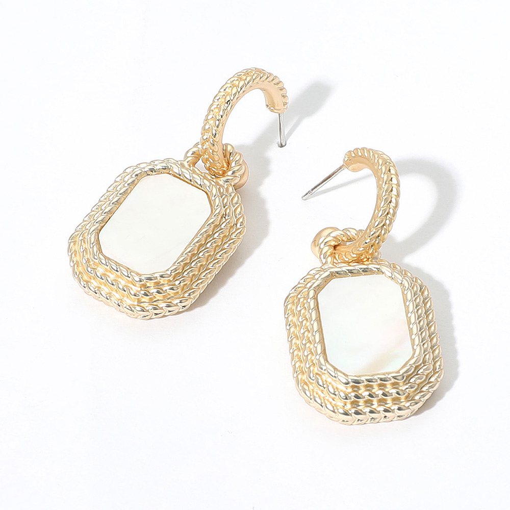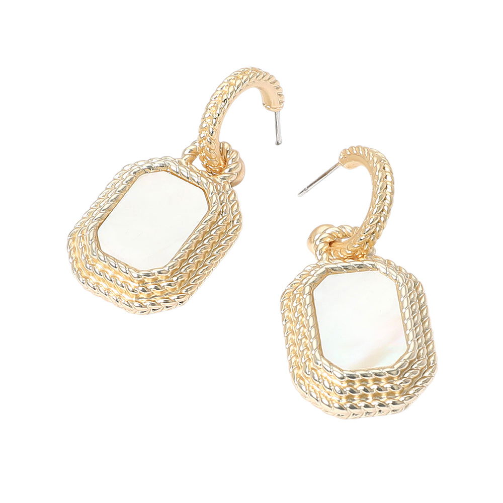 14K Gold Plated Rectangular Mother of Pearl Cluster Dangle Earrings