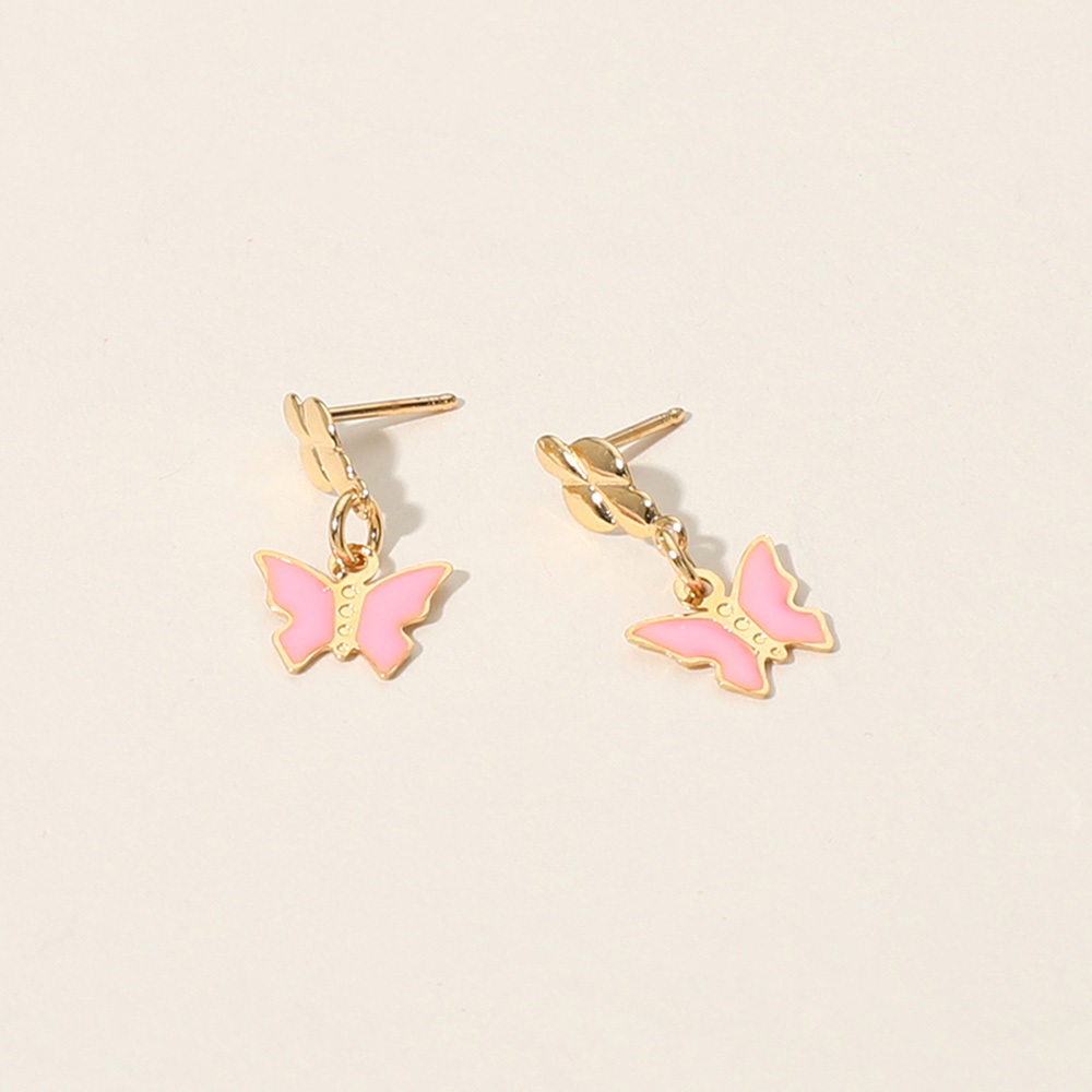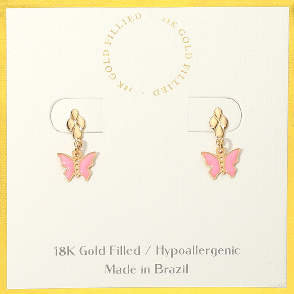 18K Gold Filled Hypoallergenic Enamel Butterfly Dangle Earrings