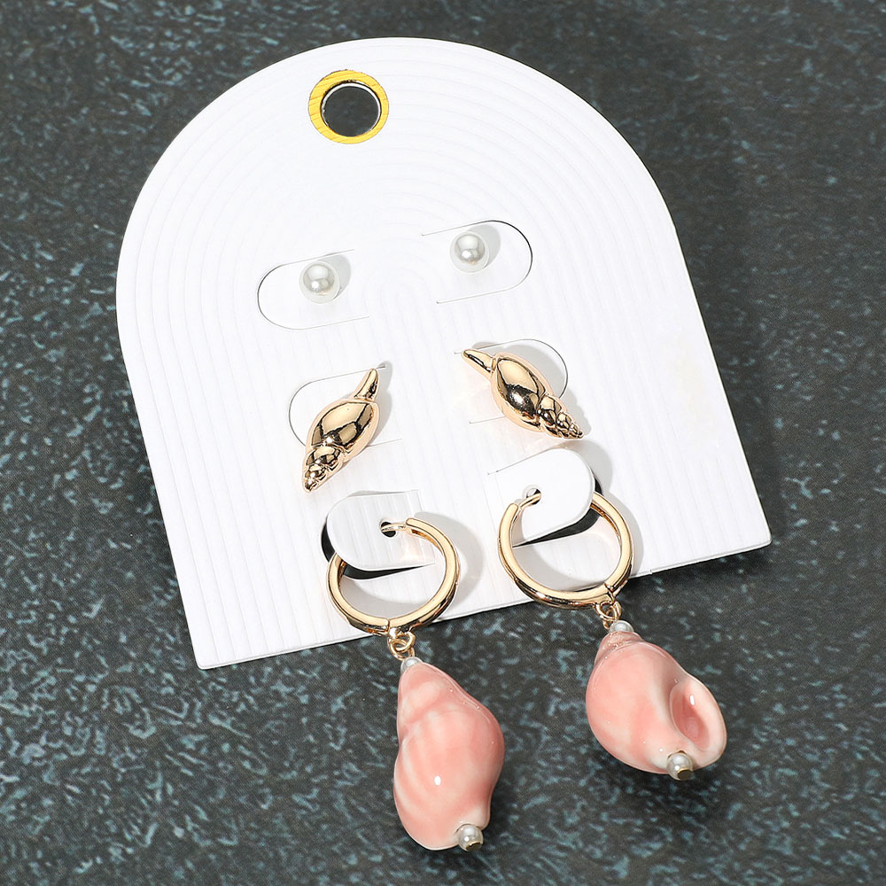 3Pairs - Pearl Metal Conch Shell Stud Ceramic Dangle Earring Set