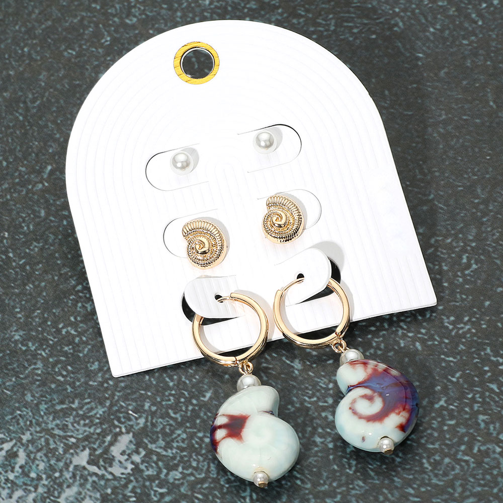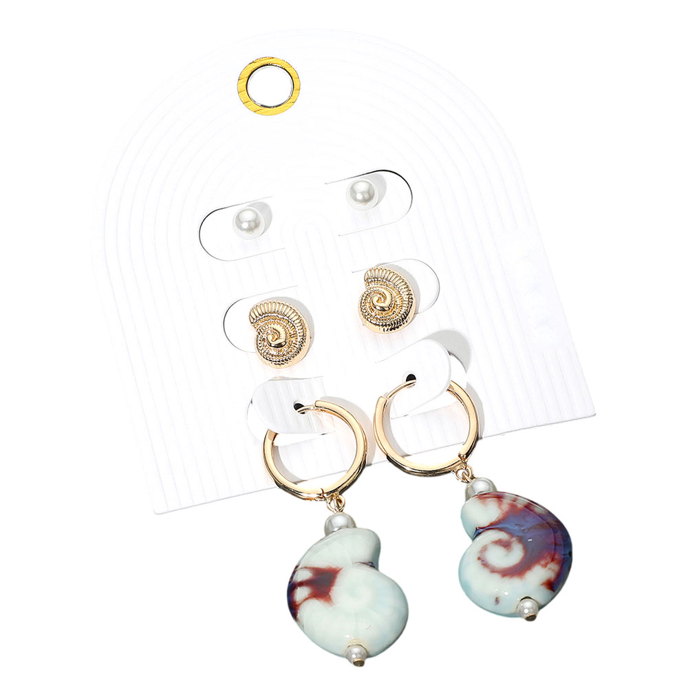 3Pairs - Pearl Metal Swirl Shell Stud Ceramic Dangle Earring Set