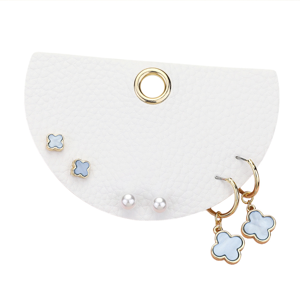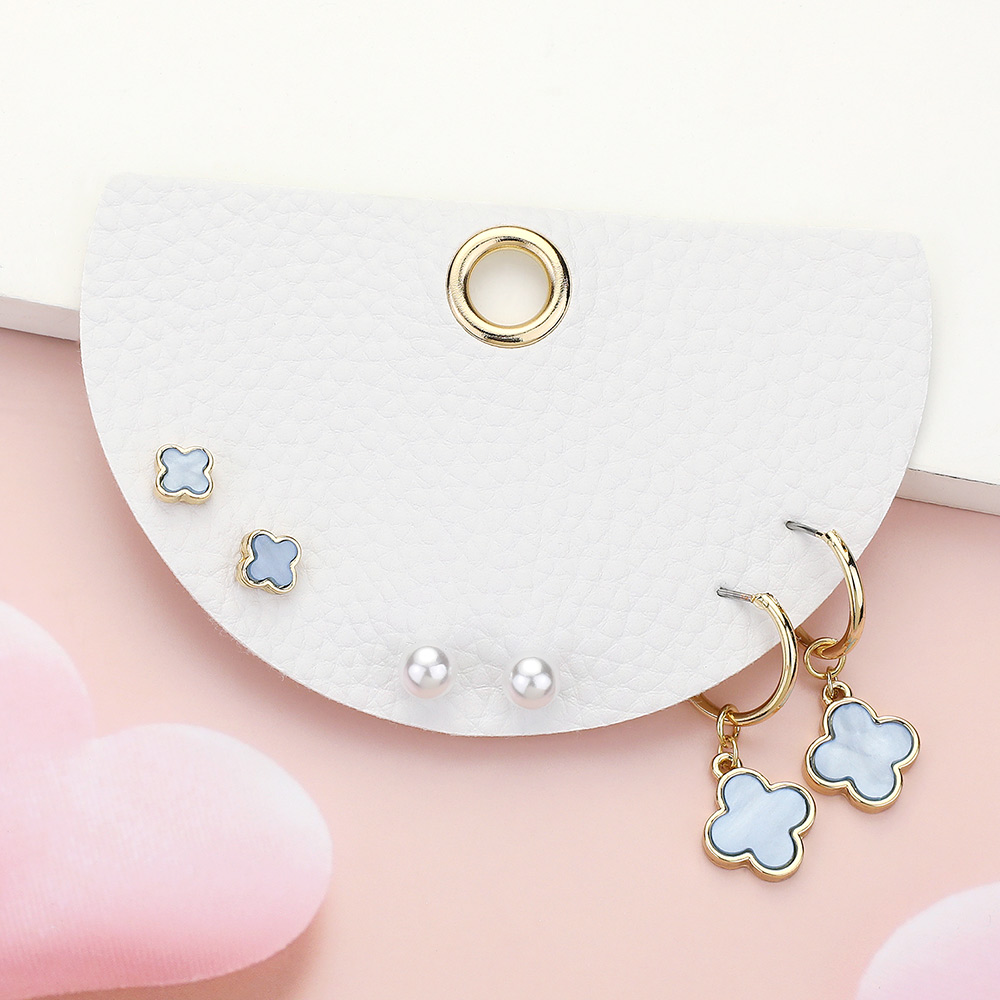 3Pairs - Quatrefoil Pearl Stud Quatrefoil Dangle Earring Set
