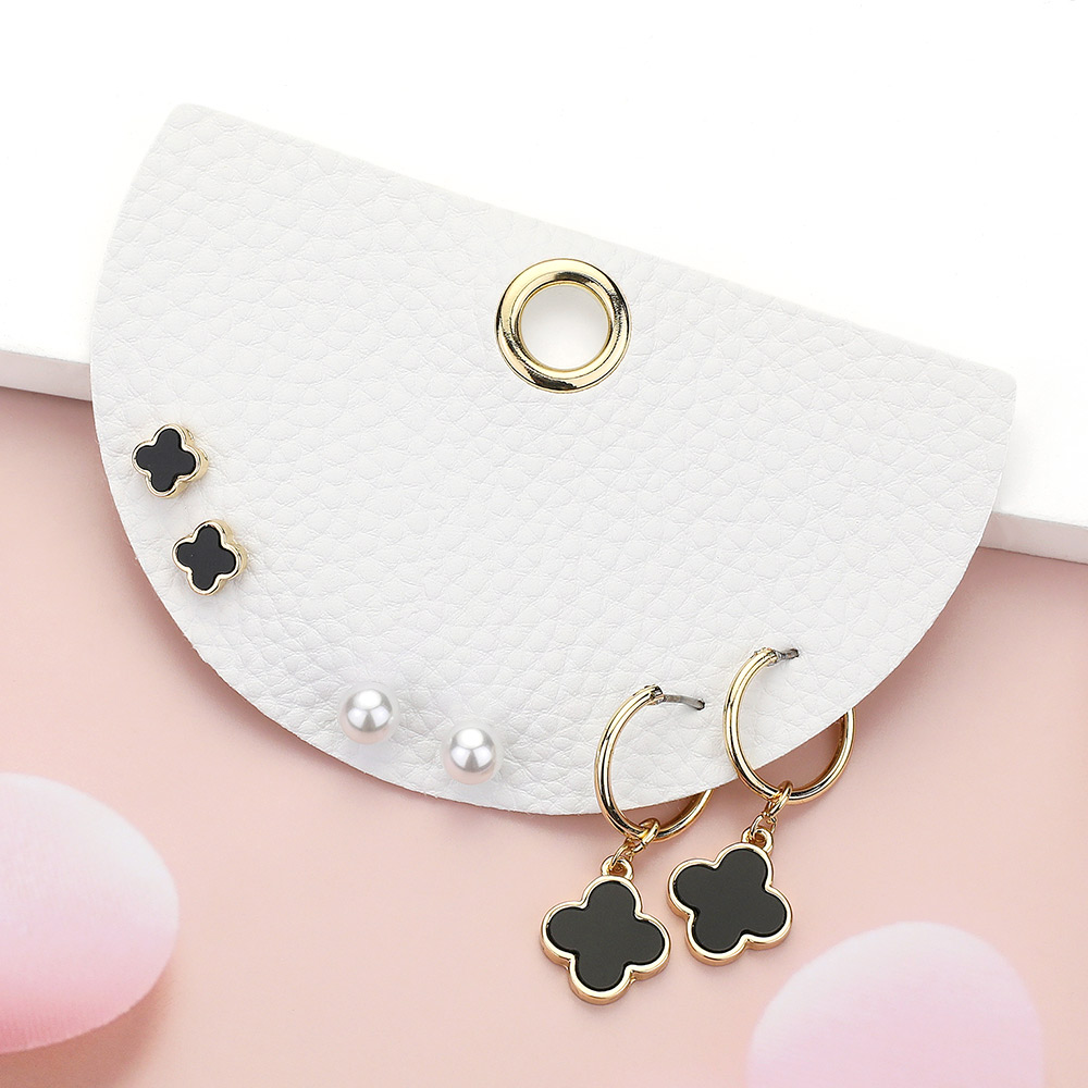 3Pairs - Quatrefoil Pearl Stud Quatrefoil Dangle Earring Set