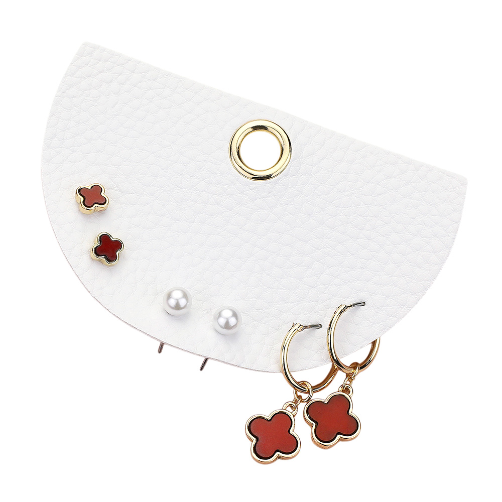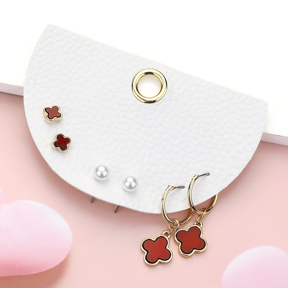 3Pairs - Quatrefoil Pearl Stud Quatrefoil Dangle Earring Set